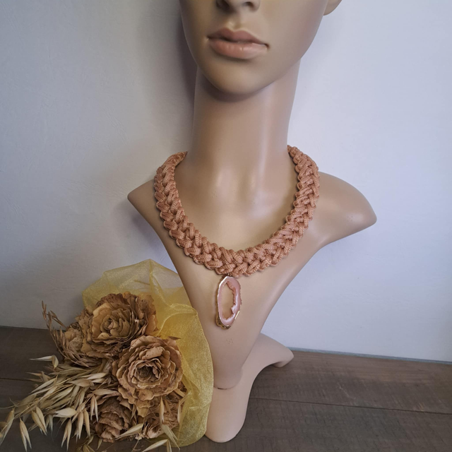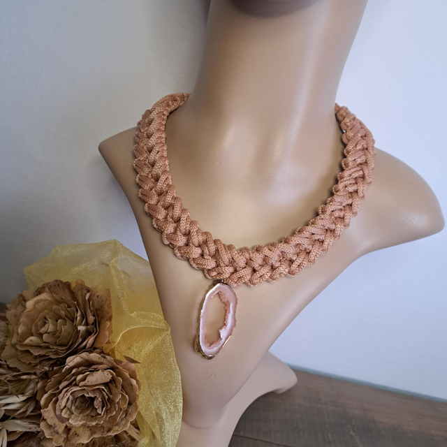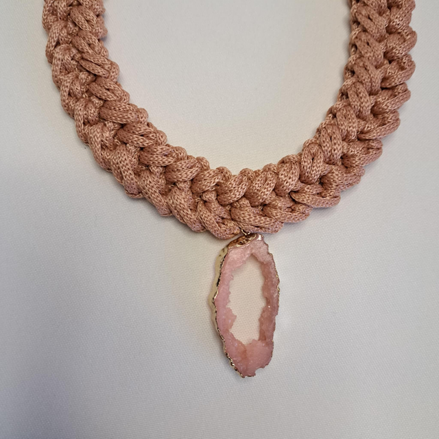 Blush Aura — rožnato-zlatkasta ogrlica z obeskom v slogu geode