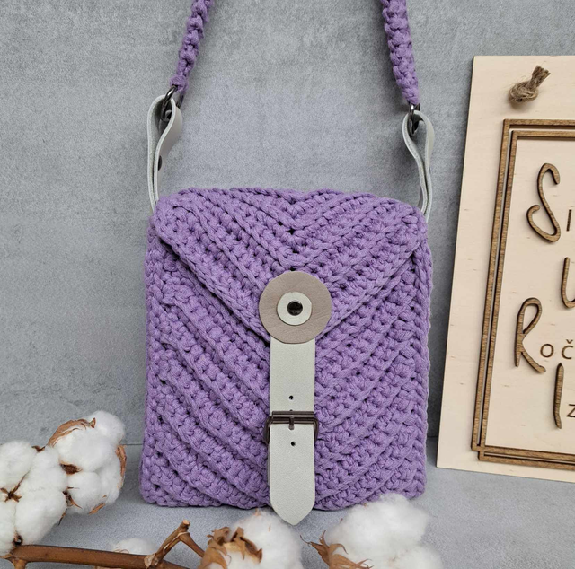 Material: torbica je ročno kvačkana iz bombažne Ribbon preje. Podložen notranji del nudi večjo vzdržljivost pri uporabi.
